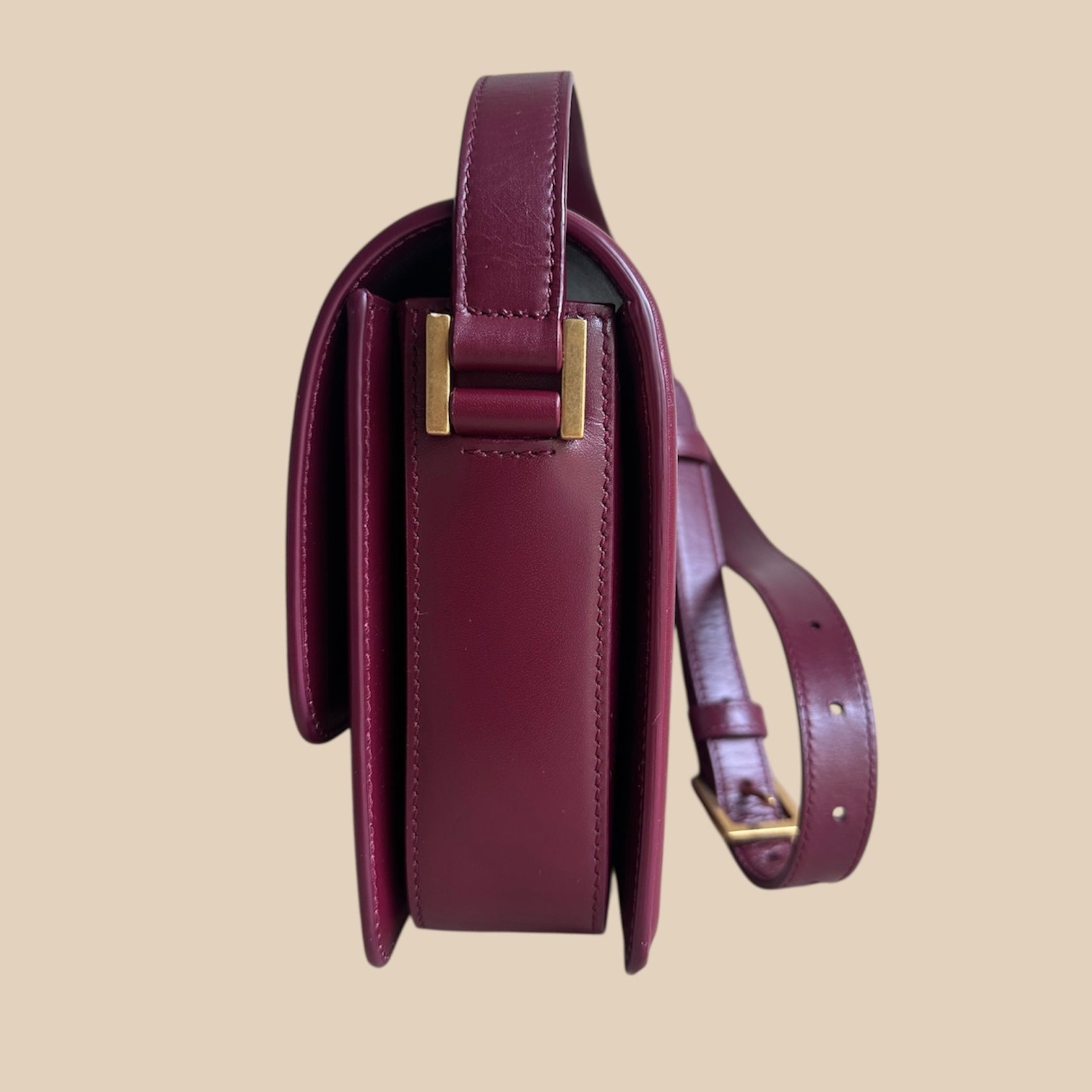 - Caratteristiche: ampio interno con uno scomparto per carte di credito, una tasca piatta sul davanti, chiusura in metallo YSL girevole, dotata di tracolla regolabile per un comodo trasporto cross body.